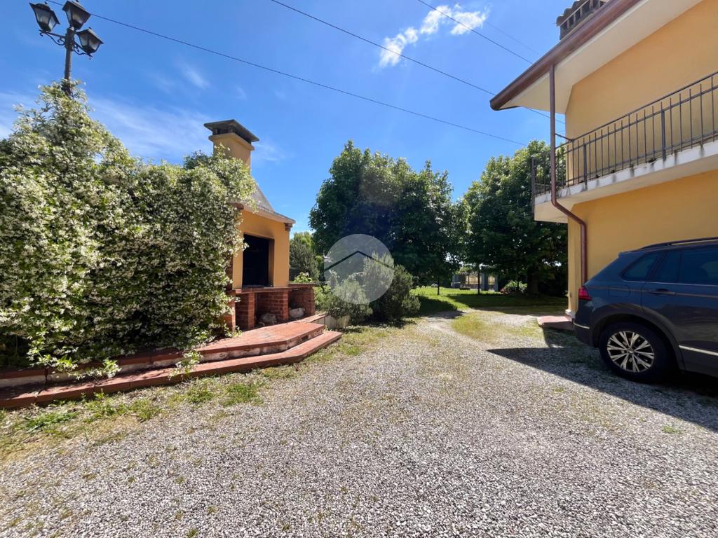 L'accesso all’immobile avviene tramite un imponente cancello in ferro battuto che si apre nel vialetto di sassi che ci porta direttamente al portico d’ingresso del nostro appartamento