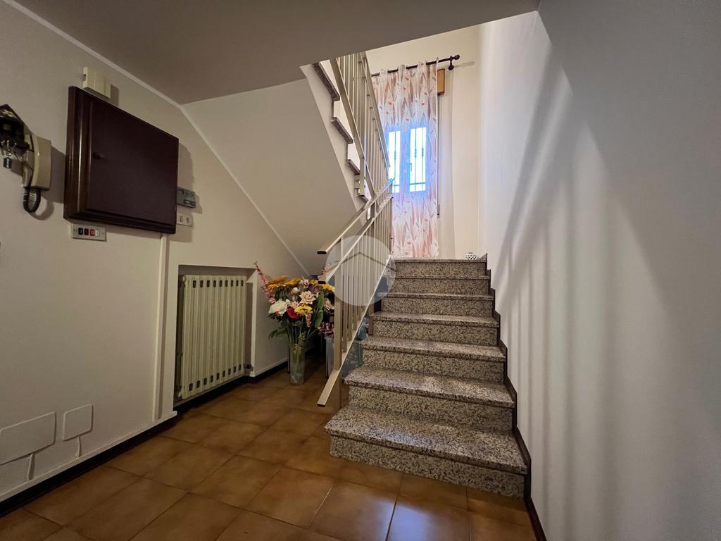 Al piano terra l’immobile accoglie con un piacevole portico, perfetto per essere vissuto nelle belle stagioni come spazio relax o zona pranzo all’aperto. Sempre sullo stesso livello troviamo una centrale termica ad uso lavanderia, un disimpegno versatile adatta come studio, camera per ospiti o locale hobby, oltre al garage collegato internamente, comodo e funzionale.