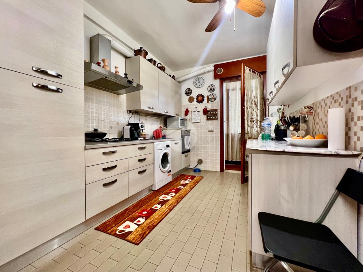 La zona giorno comprende una cucina abitabile e una veranda che aggiunge un’ulteriore superficie utile, ideale per uso lavanderia, ripostiglio o piccolo spazio relax.