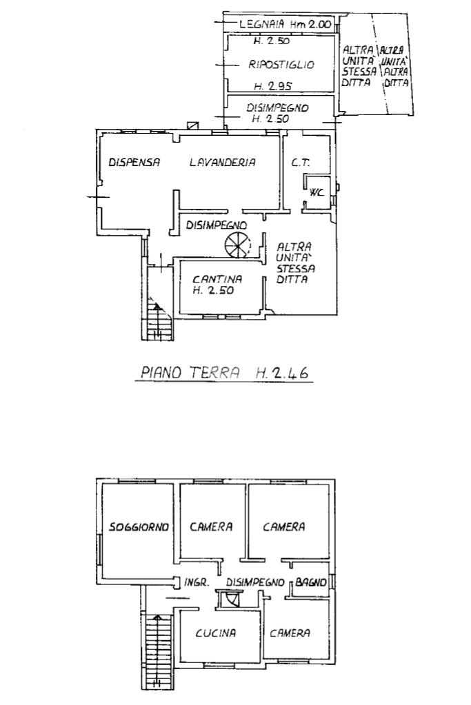 L'immobile principale si sviluappa tutto al piano primo alla quale accediamo tramite una scala esterna. Arrivati all'ingresso, troviamo un ampio soggiorno luminoso, garzie alla sua esposizione sud- est, con cucina separata abitabile, tre camere da letto di cui due matrimoniali e una doppia e bagno finestrato con doccia.