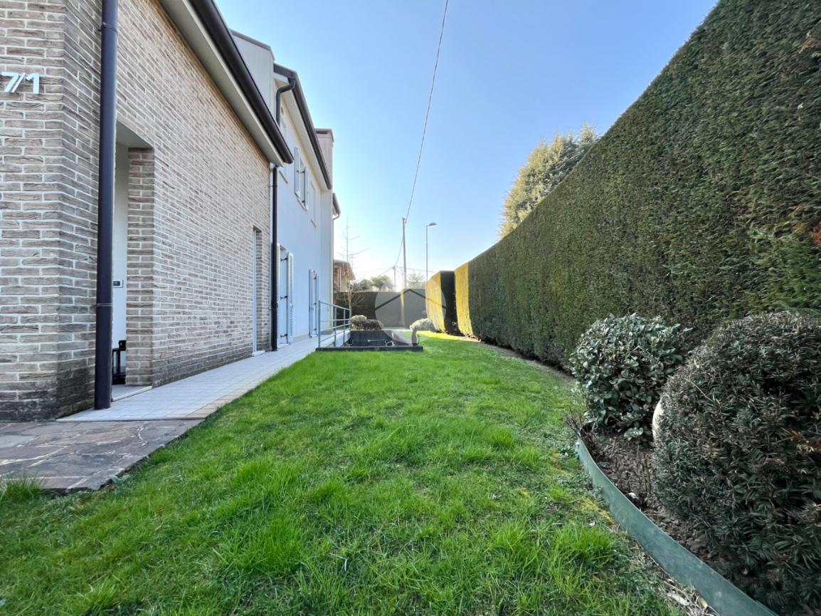 VIGONOVO - In zona tranquilla, ma al tempo stesso comoda a raggiungere tutte le principali vie di comunicazione, porzione di bifamiliare del 2006 con giardino su tre lati.