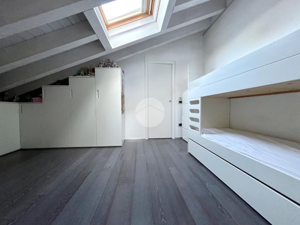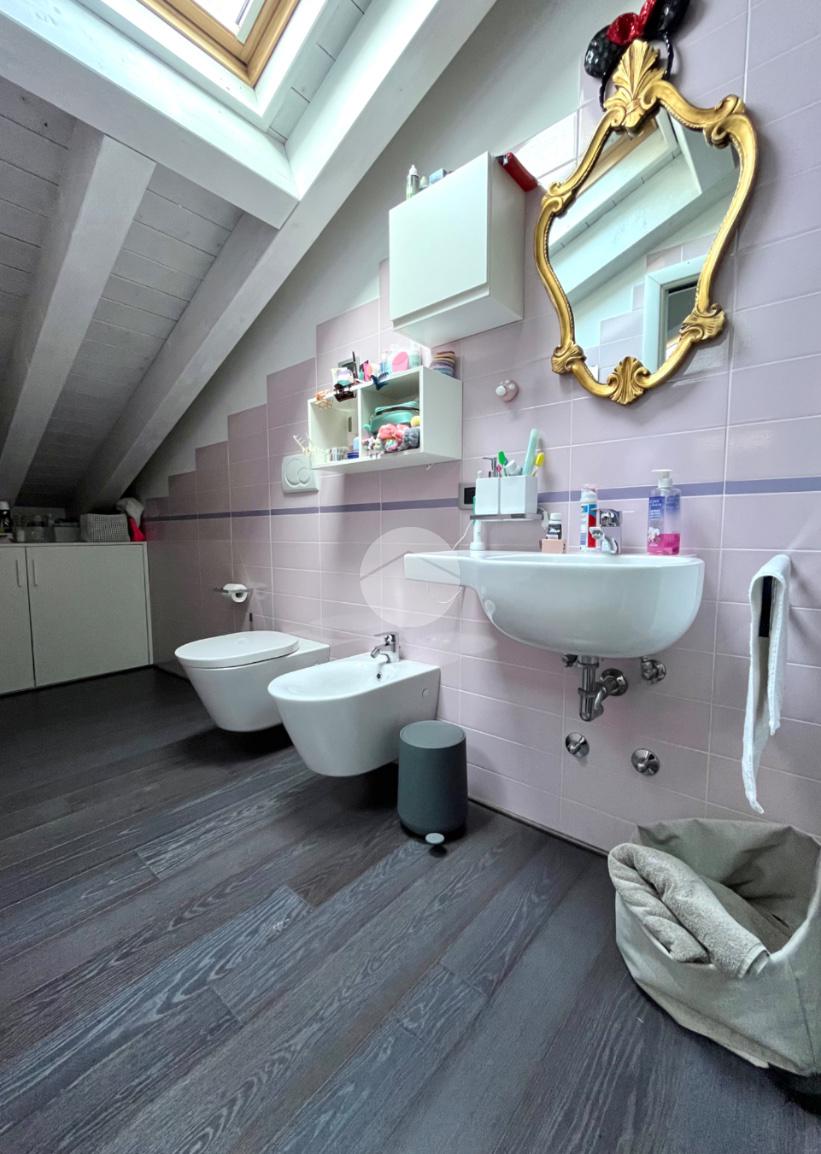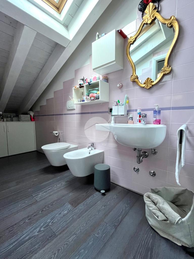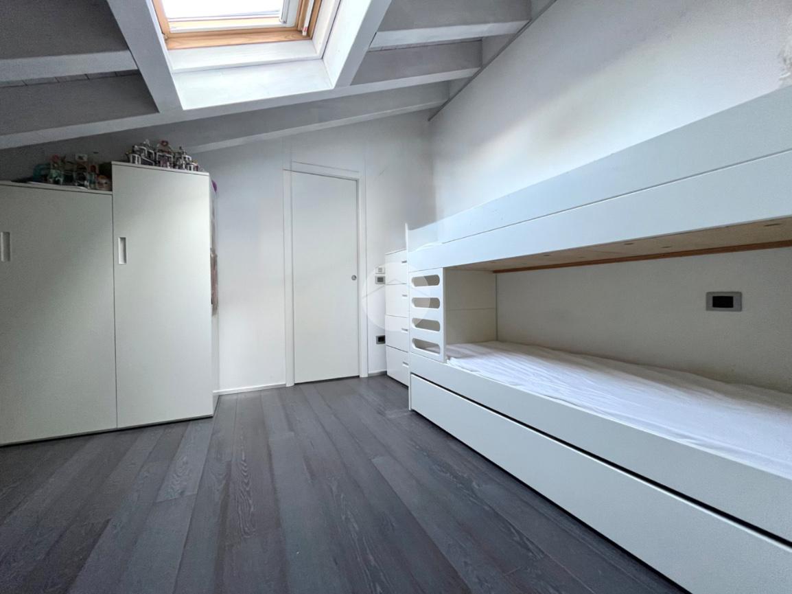 Passando al piano superiore tramite una scala a vista accediamo a tutta la zona notte composta da una camera singola con bagno privato e tetto travato a vista e da un'importante camera matrimoniale con cabina armadio, bagno sia con vasca che con doccia e terrazzo.