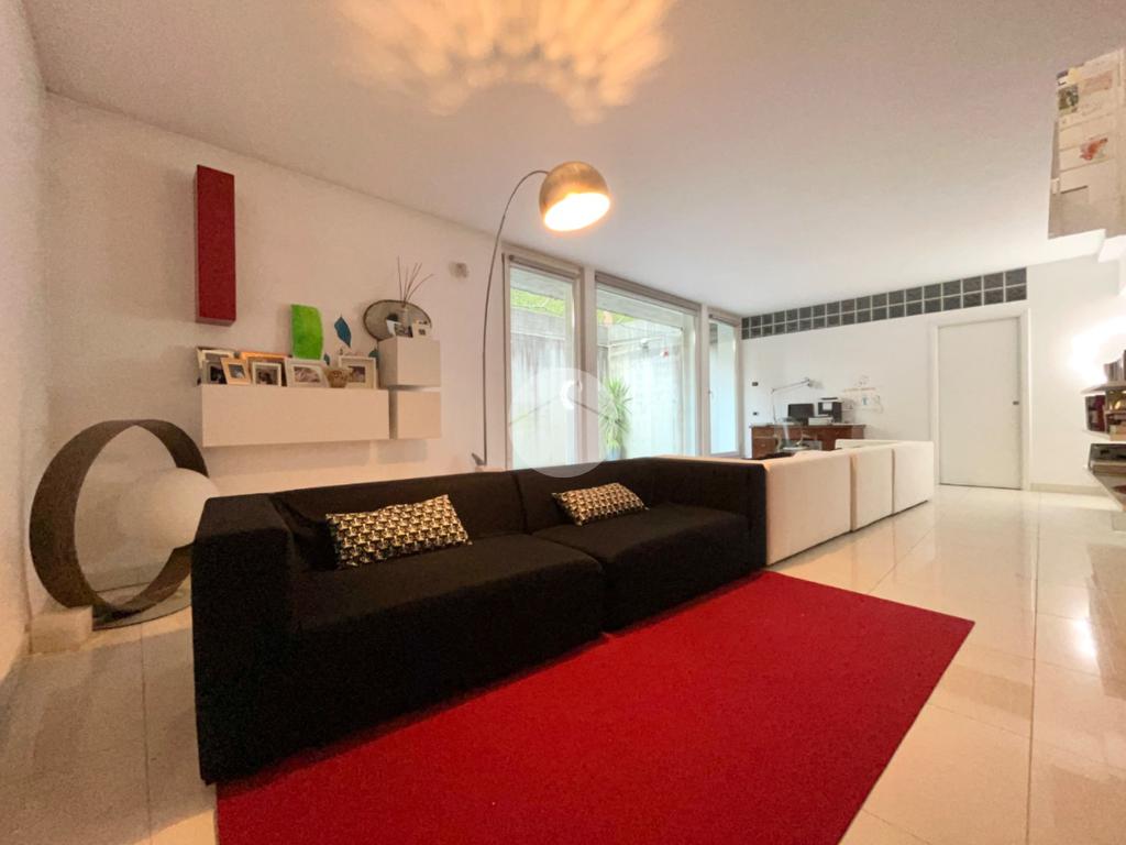 L'abitazione presenta anche un piano interrato con altezza 2,70metri ora adibito a zona soggiorno / zona relax con un'imponente vetrata che permette alla luce naturale di entrare nella sala.