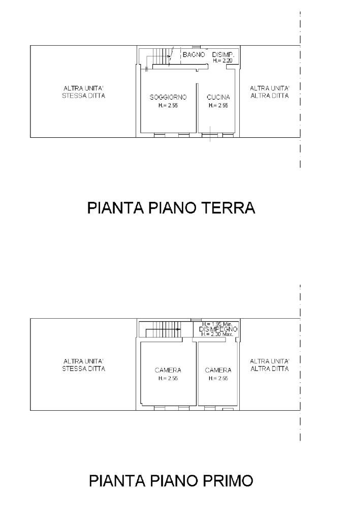 La casa, di circa 100 mq, presenta una distribuzione interna classica e funzionale. Al piano terra si sviluppa la zona giorno, composta da una cucina, un soggiorno, un bagno di servizio e due ripostigli pratici e utili per ottimizzare gli spazi.